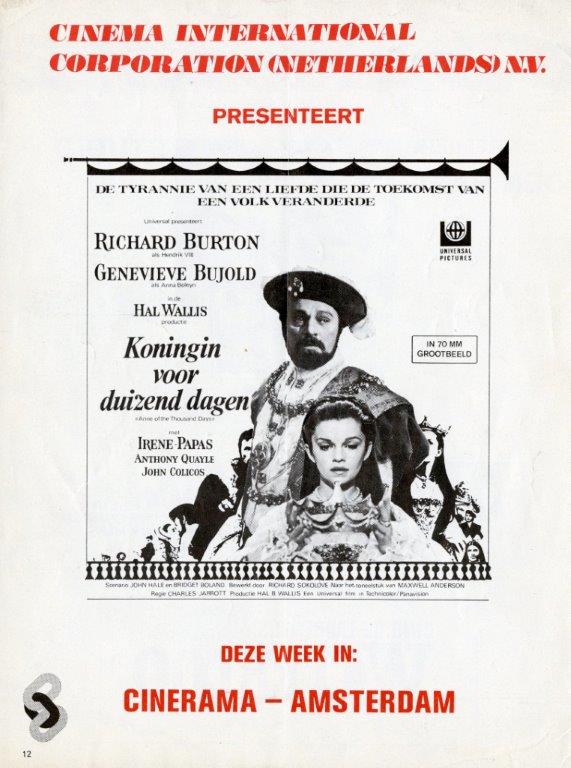 26). 15-10-1970: ANNE OF THE THOUSAND DAYS (blowup). Première.